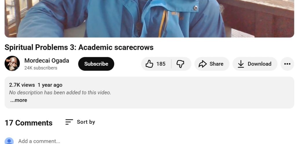 Fig 2: Mordecai Ogada Youtube Page Screen Shot: Spiritual Problem 3. Academic Scare Crows